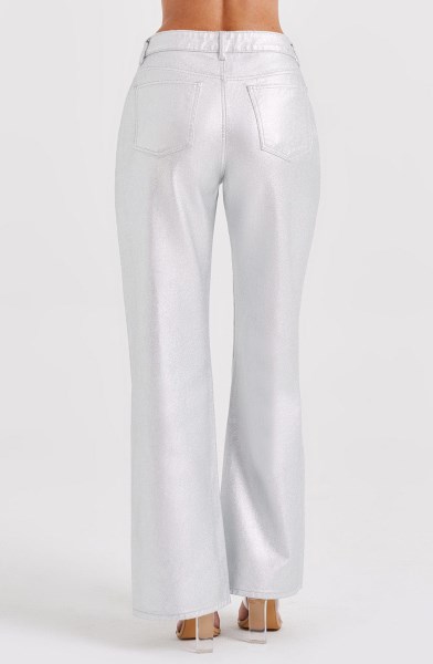 The ONLY pants your wardrobe needs this season. The metallic Cassidy jeans ooze glamour, made from silver coated denim with a relaxed fit. Pair these wide leg pants with the Kyranni top and metallic heels.